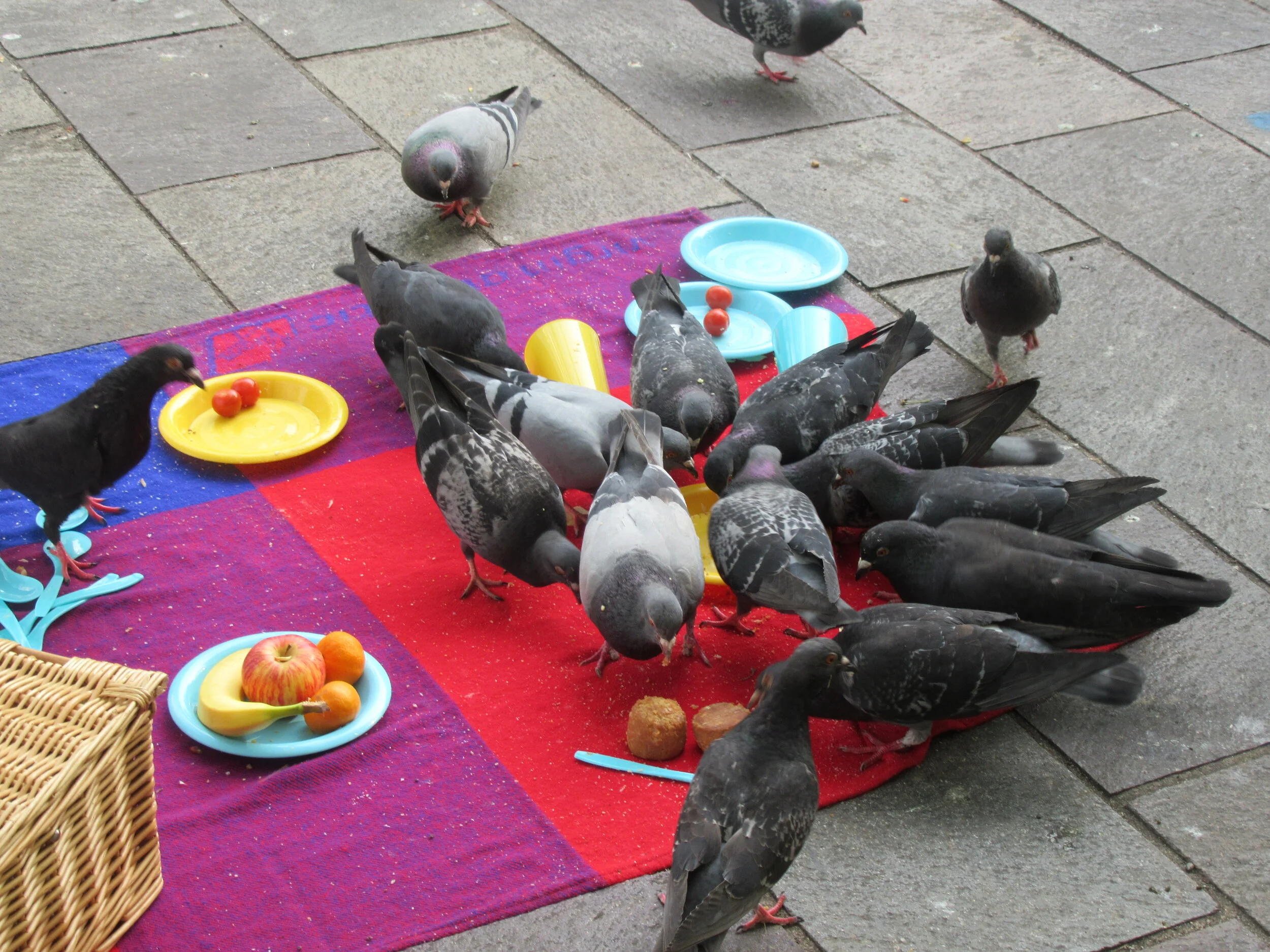 Inspired by picnic season I wanted to draw from the similarities you can see in pigeons’ behaviour and that of children. There was a chaos and freedom to both picnics that lacked all the social graces you would expect.