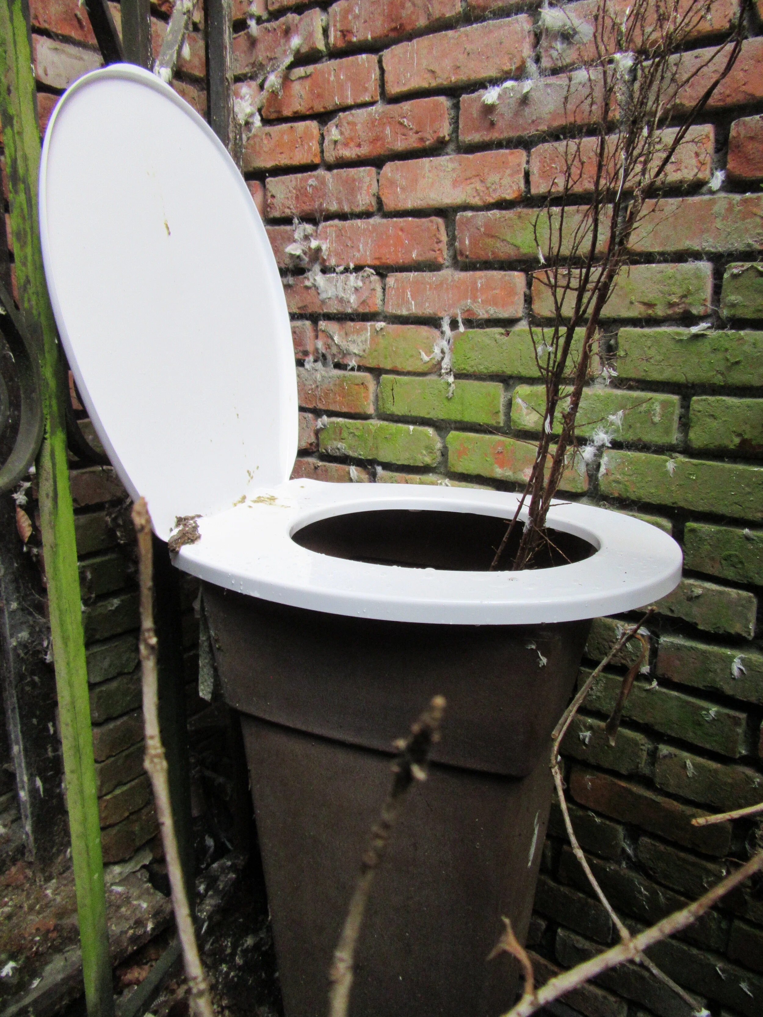 Drawing from private acts in public places I installed a toilet for a flock of pigeons that inhabited a friends courtyard.