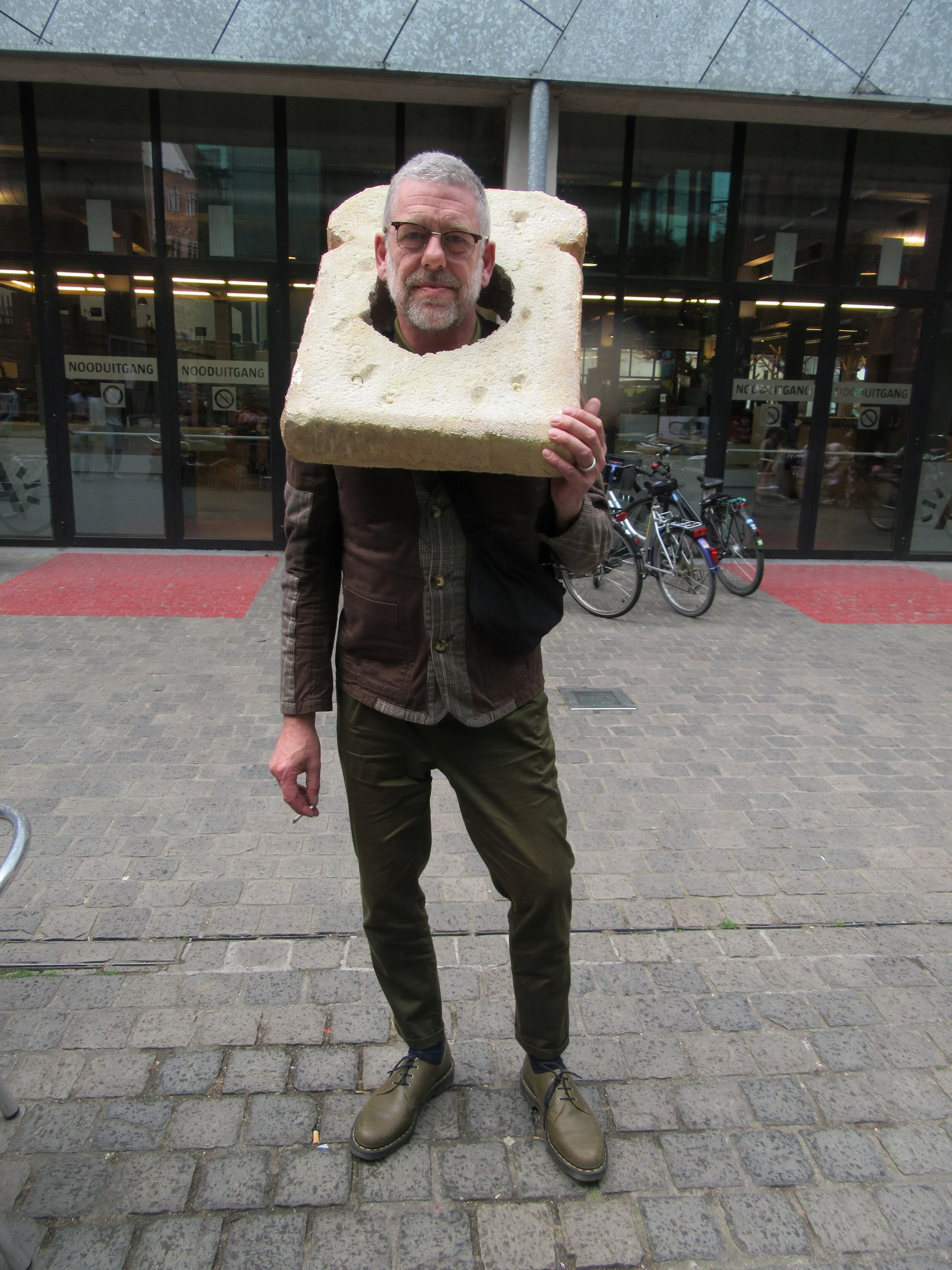 Taking inspiration from a pigeon I saw wearing a piece of bread like a shakespearean ruff, I asked members of the Antwerp public to recreate this moment, using costume to tell an absurd anecdote. Some people were very hostile and seem threatened by my request, this tension was reminiscent of the broader “liberal” threat that has been harnessed for the benefit of the Brexit campaign.